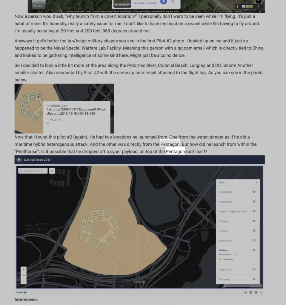 Even when the US government was researching with DJI drones, all of that data went to DJI and thus the CCP. Imagine federal agents are trying to figure out exactly how “bad people” could gain access to critical information or cause serious destruction to some of our most important buildings and infrastructure. Well, one piece of data showcases how pilots figured out how to take off and fly over the Pentagon. All of this data was pulled from the open AWS server on which DJI was storing this data. Hacker Kevin Finnesterre figured out exactly how the data was mined and where it was stored.