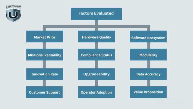 - Hardware Quality: Build durability, payload capacity, flight time, and sensor ecosystem